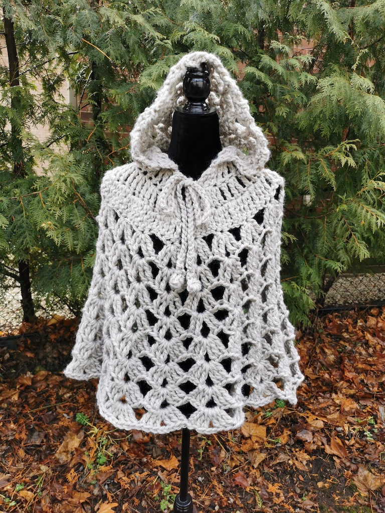 Hooded Crochet Cape, Poncho with Hood