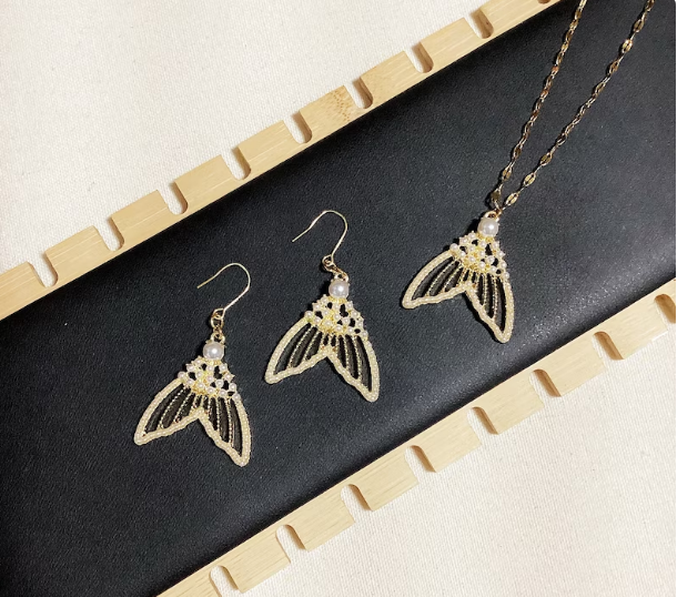 14K Shiny Mermaid tail earrings and nacklace,
